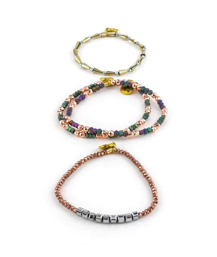 This Mixed Metals Starter Stack Sage features dainty metal mixer bracelets and a stunning design. Its beautiful, versatile style makes it the perfect choice for any occasion. Crafted from the finest materials, this starter stack is sure to add a unique touch to any wardrobe.