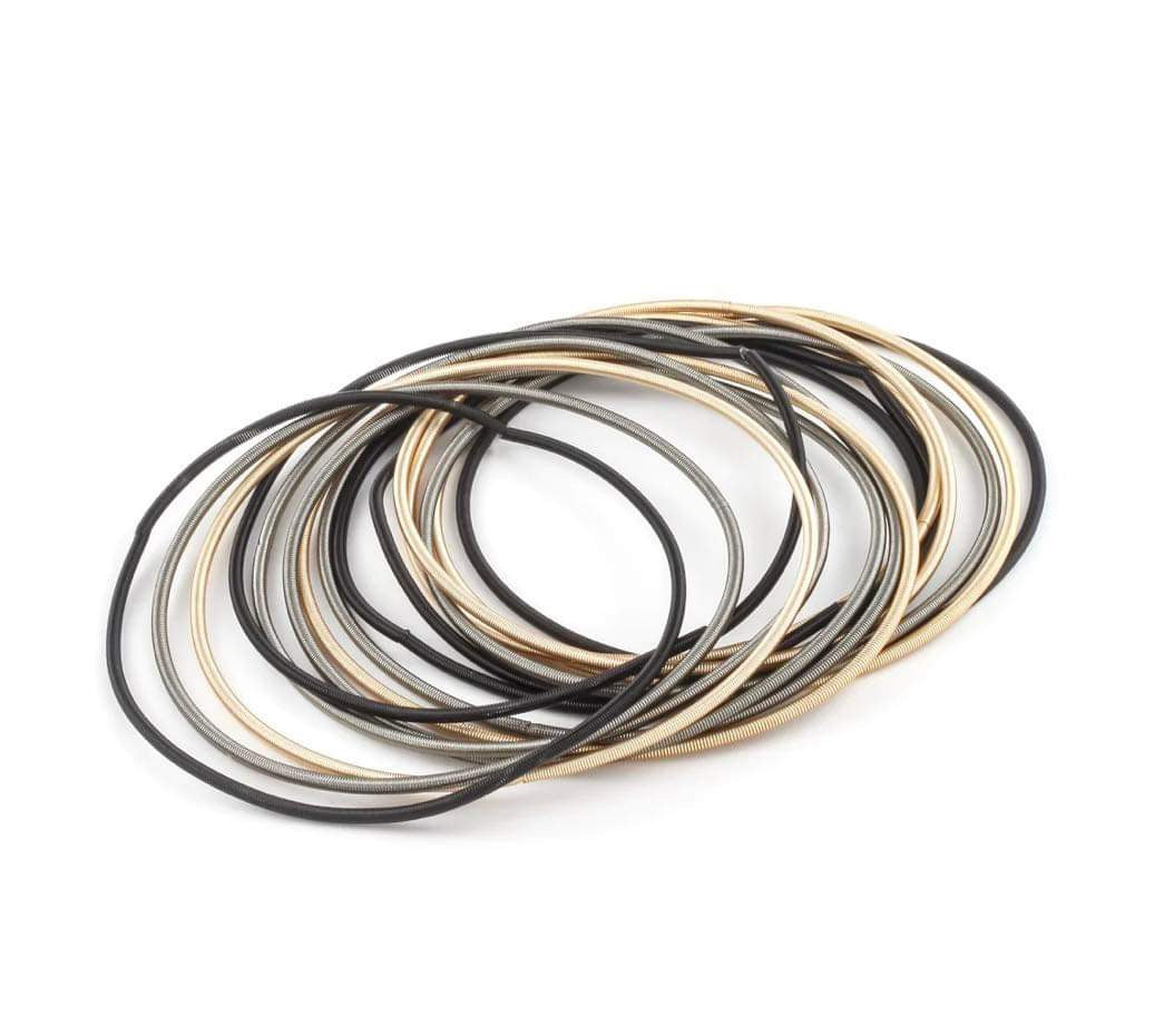 Viper Neutral presents stylish guitar string bracelets in a fun combination of colors: gray, gold, and black. Crafted from high-quality materials, these bracelets offer a timeless aesthetic that is both fashionable and durable.