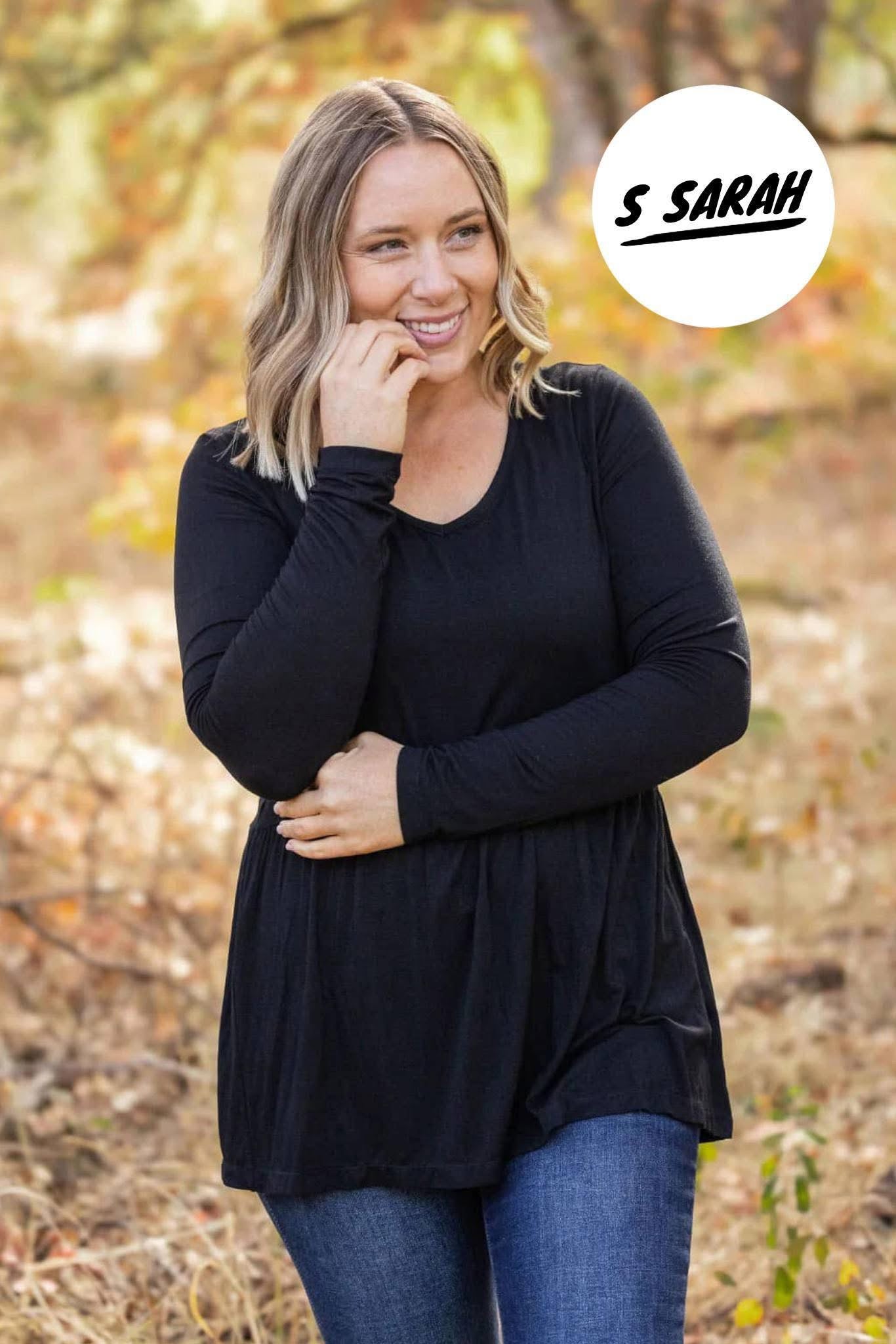 The Long Sleeve Sarah Ruffle Top in black is a classic piece for any wardrobe. With its delicate ruffle detailing and clean, crisp color, this top is perfect for creating a polished look. The soft fabric offers a comfortable fit, making it versatile for both casual and formal occasions.