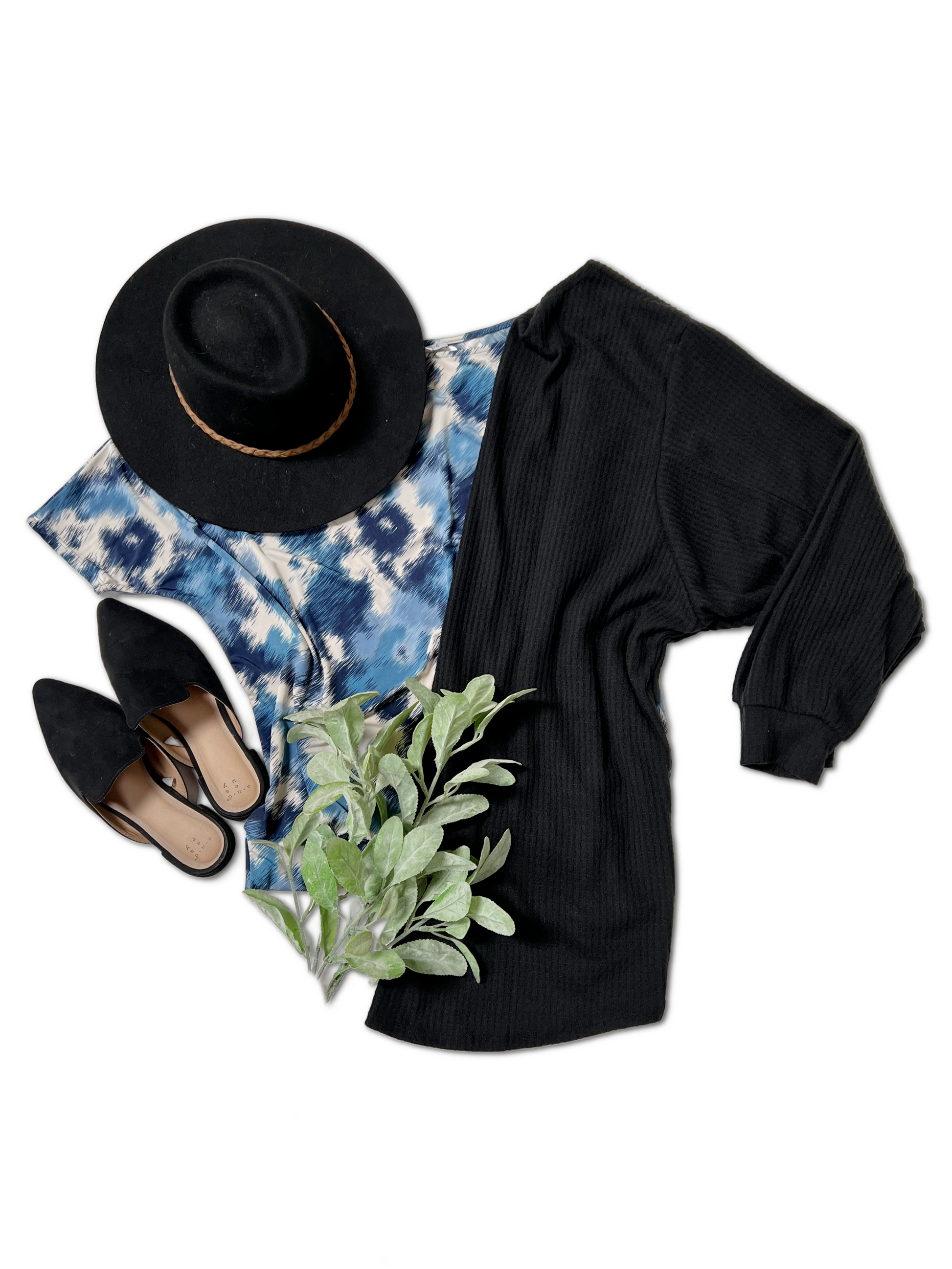 Introducing the My Savior cardigan - the ultimate Spring addition! Made with brushed waffle knit for a cozy feel and featuring a stylish open face design and round hem. This black cardigan is your go-to savior for chilly days. (Pun intended!)